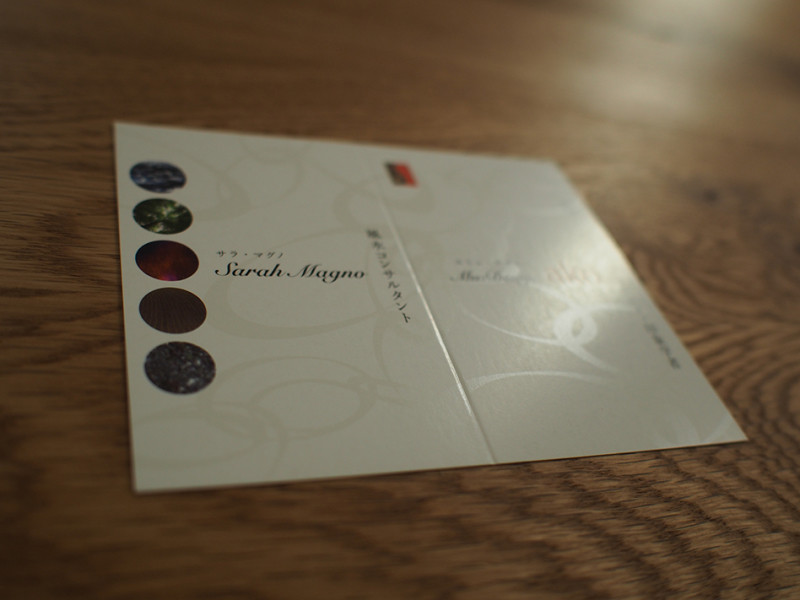 特殊加工をしているのでヒカリをあてた時、ちょっと傾けただけで柄が浮かび上がる魅せ方です。一見、白のベースにしか見えない!のですが世の中にはヒカリがあってものが見える!この名刺は常にキラキラヒカリ輝いて魅えています。柄はゴージャスなイメージに。これも依頼者の人柄を象徴しています。その人だけのオリジナル名刺の完成です。